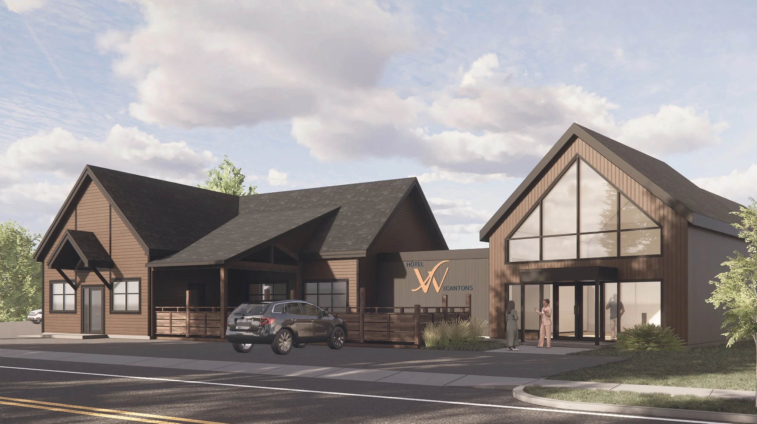 Situé au cœur du projet, l’hôtel comptera 20 chambres et accueillera une clientèle variée : villégiateurs, amateurs de motoneige et de VTT, travailleurs et clientèle corporative.